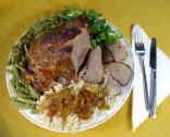 ca. alle 10 Min. mit Mariade bespinseln oder mit Bratensuace übergiessen