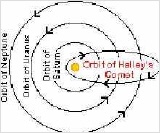 Halley läuft entgegengesetzt zum Drehsinn der Erde um die Sonne und besitzt eine Bahn, die gegenüber der Ekliptik um 18° geneigt ist.
