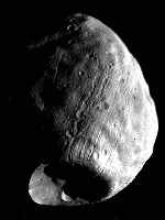Mars besitzt zwei kleine, unregelmäßig geformte Monde, Phobos und Deimos (griech. Furcht und Schrecken).