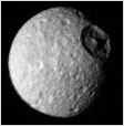 Die mit Einschlagskratern übersähte Oberfläche vom Saturn-Mond Mimas wurde von Voyager 1 am 12. November 1980 aus einer Distanz von 424'000 km aufgenommen. Der grösse auf dieser Aufnahme sichtbare Krater hat über 100 km Durchmesser und zeigt einen auffälligen Zentralberg. JPL/NASA.