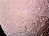 Voyager 1 fotografierte den Saturn-Mond Rhea bei der nächsten Annäherung am 12. November 1980 aus einer Distanz von 128'000 km. Der abgebildete Ausschnitt zeigt die am stärksten von Einschlagskratern übersähte Region Rheas. Die deutet darauf hin, dass wir die Oberfläche sehen, wie sie nach der Entstehung des Mondes vor 4.5 Milliarden Jahre offengelegt wurde. Es sind Oberflächendetails bis etwa 2.5 km Grösse erkennbar. JPL/NASA.