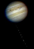 Spektatakuläres Ereignis war die Kollision von Shoemaker - Levi 9 mit Jupiter. Der Komet zerbrach, als er 1992 in die Nähe des Planeten kam, in über 20 einzelne Teile, die dann im Juli 1994 mit Jupiter zusammenstiessen. |