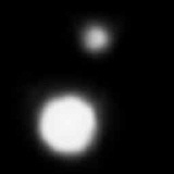 Zuerst hielt man es für durchaus möglich, dass Pluto etwa so gross sei wie die Erde. Doch im Laufe der Jahrzehnte wurde seine Grösse immer weiter nach unten korrigiert. 1978 fand D.C. Cristy, dass Pluto eine Art Doppelplanet ist, denn der von Cristy entdeckte Mond Charon ist halb so gross wie Pluto selbst. Pluto und Charon umkreisen einander einmal in 6 Tagen. Heute wird der Plutodurchmesser mit nur 2200 Kilometer angegeben. Etliche Monde der anderen Planeten sind somit grösser als Pluto. Pluto hat die exzentrischste Bahn aller Planeten. Sein 248 Jahre dauernder Umlauf führt ihn von 4.4 Milliarden Kilometer Distanz zur Sonne (knapp innerhalb der Neptunbahn) bis auf 7.4 Milliarden Kilometer von der Sonne weg. |