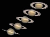 Der Durchmesser der Ringe beträgt gegen 280'000 km (2/3 der Distanz Erde – Mond), sie sind jedoch kaum 100 Meter dick. Schon in einem Amateurteleskop kann man die Cassinische Teilung in den Ringen erkennen. Sie ist eine Region mit weniger und dunkleren Brocken zwischen den helleren Ringen. |