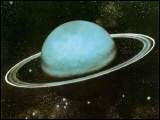 Uranus ist der Erste der sogenannten "neuen Planeten". Das Wort "neu" bezieht sich darauf, dass Uranus in der Antike unbekannt war. Uranus kreist doppelt so weit von der Sonne entfernt wie sein innerer Nachbarplanet Saturn; zu Uranus ist es von der Erde aus 20x weiter als zur Sonne. Deshalb dauert es 80 Jahre - –ein ganzes Menschenleben - bis Uranus einmal die Sonne umrundet hat. Dem blossen Auge erscheint Uranus als unscheinbares Sternchen unter vielen. |